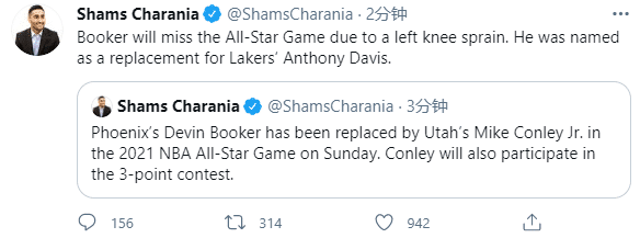 官宣!布克因伤退出全明星,康利首次入选引热议,队友:当之无愧