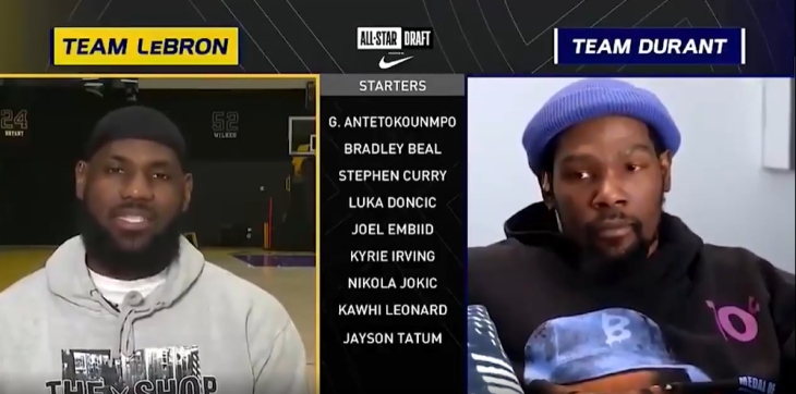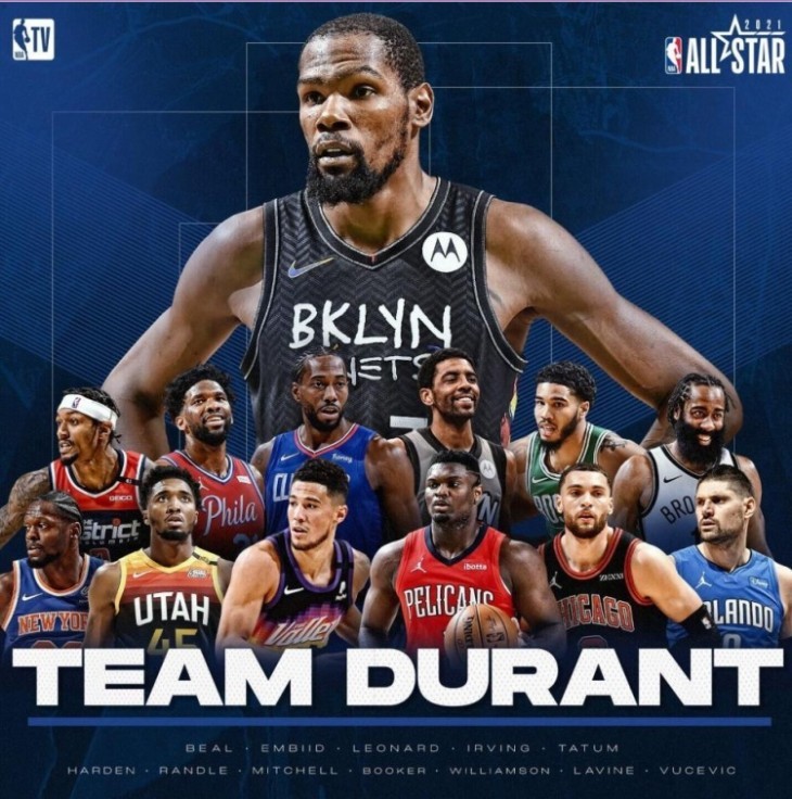 杜兰特队:欧文、恩比德、小卡、塔图姆、比尔。