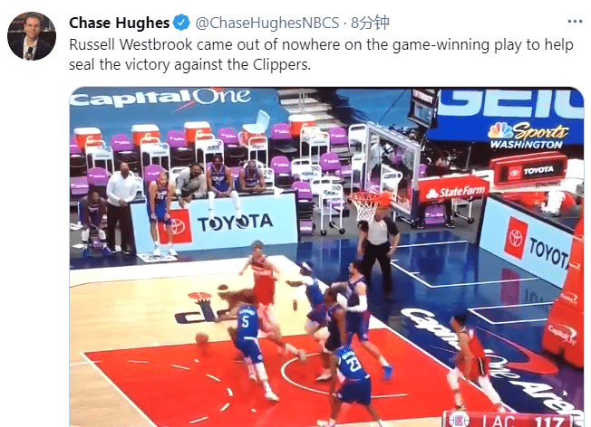 快船的苏醒来得有些晚,巴图姆命中三分随后他又制造三分犯规,三罚都有。奇才这边罚球,韦少出现两罚一中。莱昂纳德三分命中,快船追到只差1分。最后时刻,八村塁两罚一中,然而最关键的篮板球,韦少神兵天降,直接从祖巴茨手上抢走,比尔控制下皮球。