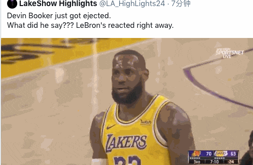 有趣的是声援布克的人不仅仅是媒体,场上詹姆斯的反应也在某种程度上给了布克声援,当看到布克就这样被罚出去的时候,詹姆斯也露出了不可思议的表情,纵横联盟18年,除了当年那个在替补席因为大笑被罚出去的哥们,詹姆斯估计也没有见过这样的情况。
