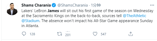 来源:24直播网03-03 19:0724直播网讯北京时间3月3日,名记Shams在湖人输给太阳的比赛后爆料,湖人对阵国王的背靠背的比赛中,詹姆斯将轮休。这是这位36岁的老将,本赛季第一次轮休。