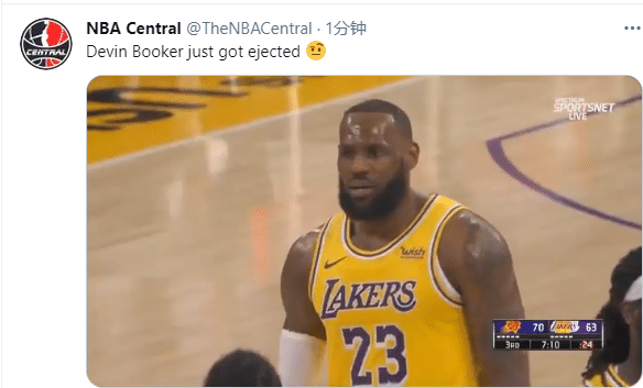 第三节8分15秒,布克持球反击上篮,大莫里斯补防被吹犯规,对于这一次吹罚,詹姆斯和沃格尔都不满判罚,最终他俩吃到技术犯规,保罗执行两次技犯罚球;随后还没打一分钟,7分10秒,布克连续吃到两次技犯被驱逐离场,然后他沮丧离场,因不满喷垃圾话被驱逐,裁判零容忍驱逐布克引热议。