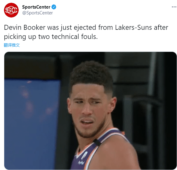 湖人和太阳一战,裁判太抢镜——第二节吹罚波普一级恶犯,第三节先后吹罚詹姆斯、沃格尔和布克技术犯规,其中布克连吃两T遭驱逐;对于裁判的吹罚,联盟确实该管一管了。