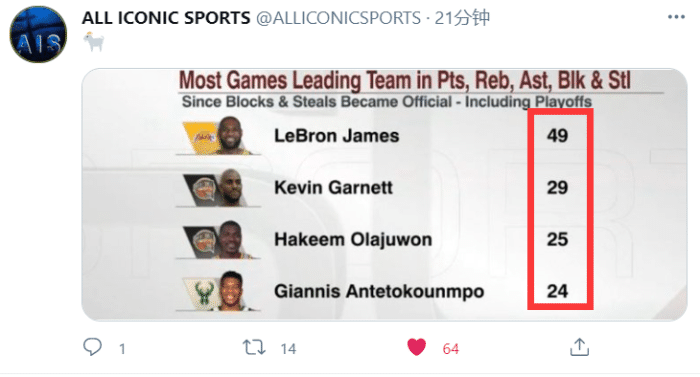 一直以来,勒布朗都被视为NBA历史上最全能的球员之一,而这个数据再次佐证了这个观点,别忘了勒布朗还曾在总决赛五项数据领跑两支球队!这个神迹前无古人恐怕也是后无来者!