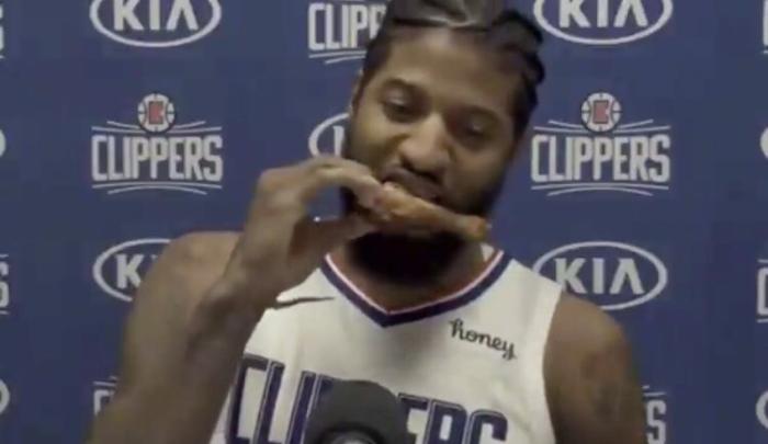 饿坏了!快船赢球赛后乔治大口吃光鸡腿,小卡调侃:我啥都没吃到