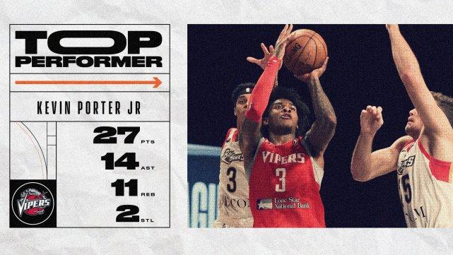 来源:24直播网02-26 16:1624直播网2月26日讯 北京时间2月26日,G联赛继续进行,火箭下属的毒蛇队124-113击败了目前排名G联赛第一的伊里湾鹰队。凯文-波特发挥出色,全场24中11,得到27分11篮板14助攻的三双数据,此外还有2次抢断和1次盖帽。波特成为了今年G联赛开战至今第一位拿下三双数据的球员。
