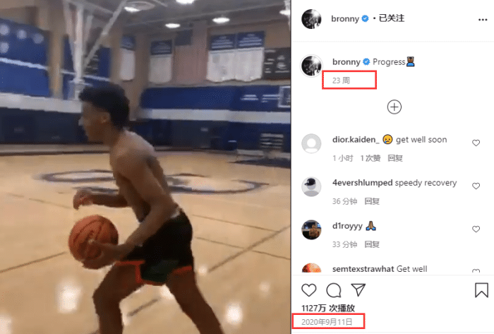 16岁布朗尼在社交媒体Ins上拥有580多万粉丝,这人气甚至比当今联盟很多球星的粉丝还多,不过他已经5个多月没有更新打球的动态,上一次他在Ins上晒打球视频是20年9月11日,赤膊扣篮视频获得1000多万点赞;目前布朗尼正在养伤,但愿他早日摆脱伤病,早日痊愈。