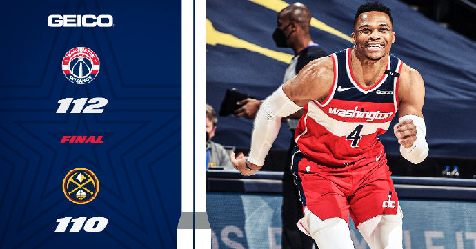 奇才112-110险胜掘金 比尔33分 威少三双 穆雷34+6+6