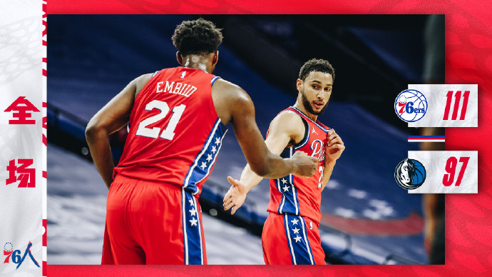 76人111-97轻取独行侠 恩比德23+9 西蒙斯15+7 东契奇19分