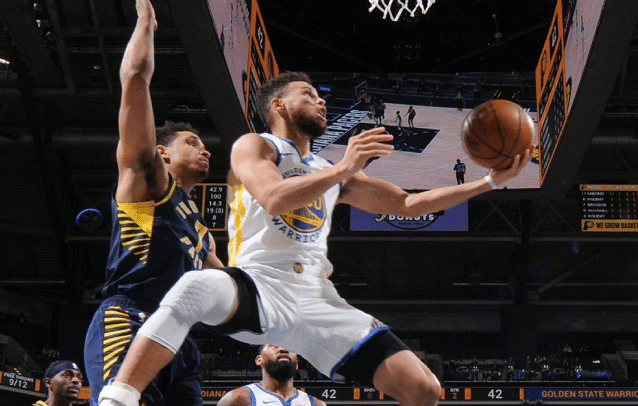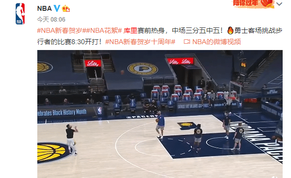 值得一提的是今天的比赛开始前库里在球场内热身,他练起了自己的Logo shot,也就是踩着中场的步行者标志,然后出手三分球,结果是5投5中,要知道这可是Logo shot的超远三分球,可见库里的手感是非常出色的。
