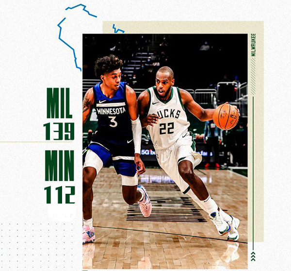 雄鹿139-112大胜森林狼 字母哥37+8+8 唐斯26+8+11