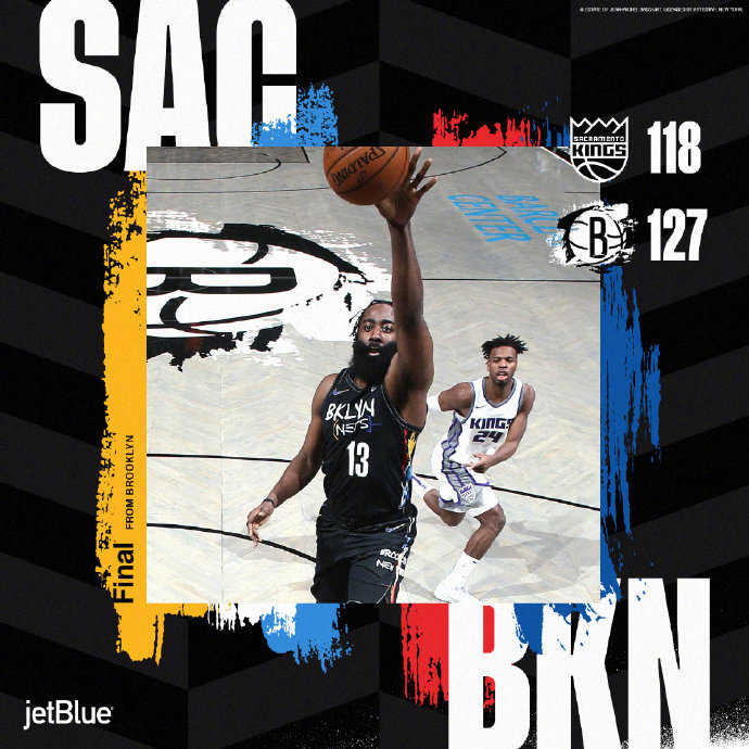 末节,篮网没有再给对手机会,在哈登的串联下,他们发起总攻。期间,布鲁斯-布朗状态尤其出色,他连投连中个人得分已逼近30大关。而国王这边,在对攻中却逐渐乱了方寸。本节后段,布朗三分命中,篮网领先优势达到14分,悬念也被逐渐杀死了。最终,全场打完,篮网127-118轻取对手,拿到了7连胜。