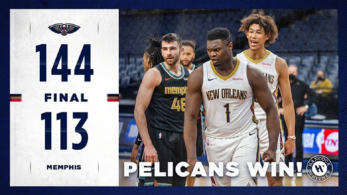 鹈鹕144-113轻取灰熊 锡安31+7+6 哈特27+9 莫兰特28+7+8