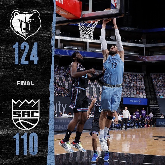 灰熊124-110轻取国王 瓦兰25+12 莫兰特16+10 福克斯23+9