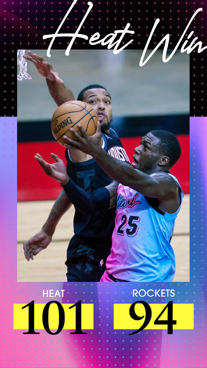 热火101-94力克火箭 巴特勒27+10+10 考辛斯16+11