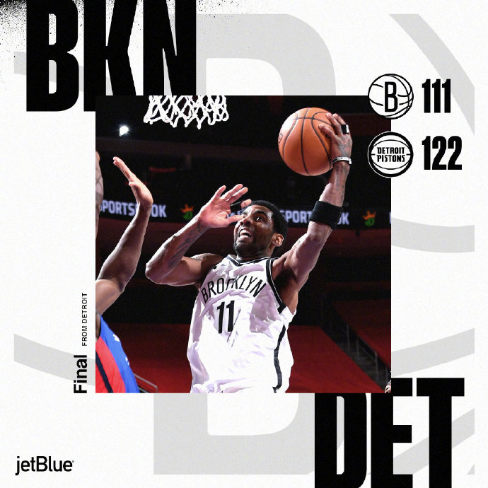 末节,篮网依旧占不到便宜,活塞开局一波7-0的攻势重新拉开至两位数奠定胜局,随后不管是哈登还是欧文拿分都没能重新追上比分。最终,活塞122-111击败篮网结束4连败。
