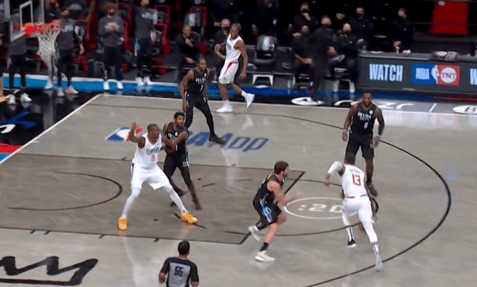 下半场的比赛开始后,两队进入拉锯战比分交替领先,三节打完的时候快船领先篮网2分,第四节的比赛两队一度打成了102平,但是到了比赛最后时刻,杜兰特中投命中,哈登造犯规三罚全中,篮网取得了9分的领先优势,莱昂纳德造犯规两罚全中,杜兰特三分命中,这也是杜兰特本场比赛的第一次三分出手,巴图姆三分回应,杜兰特分球失误,小莫里斯打欧文打成2+1,快船将分差缩小到了4分,32秒的时候哈登进攻犯规,关键时刻乔治三分命中,9.8秒杜兰特两罚全中,莱昂纳德两罚全中,篮网还是领先1分,哈登后场发球直接甩前场,杰夫-格林2分打进,并造成犯规,遗憾的是格林罚球没有进,最终篮网险胜快船。杜兰特28分,哈登23分11板14助,欧文39分。东部第三战胜西部第一,同时在快船输掉这场比赛后,爵士升到了西部第一的位置。