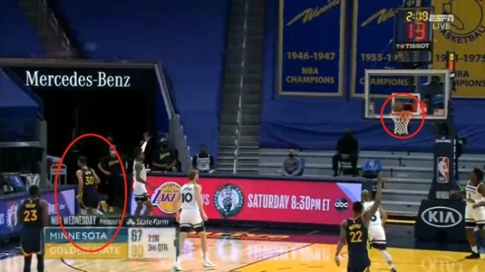 尽管手感不佳但是库里还是迎来了里程碑,出战711场位列勇士队史第三,但是一旦当他找回手感的时候对手就撑不住了!第三节勇士快攻中,库里接到格林传球命中底角三分,库里在球飞往篮筐的过程中就已经提前转身自信回头。第四节他又命中了一个高难度的抛投,只不过表情···有点生无可恋的意思!