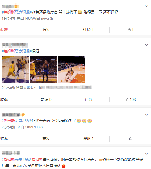还有不少球迷抨击詹姆斯的行为是“惯犯”,甚至还放出了不少以往詹姆斯在赛场上动作很大的瞬间,称詹姆斯其实不是一次两次了,而且在对手起跳之后明明知道是最没有保护的状态,但还是推了恩比德,所以詹姆斯被直接骂上了热搜。