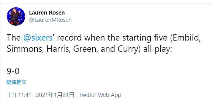 根据统计,费城的替补得分场均仅有33分,排名联盟倒数第6,而他们的首发场均得分超过81分。本赛季,由于小库里之前检测呈阳性缺席了数场比赛,否则76人的战绩可能会更好。但即便如此,他们目前12胜5分依然高居东部第一。