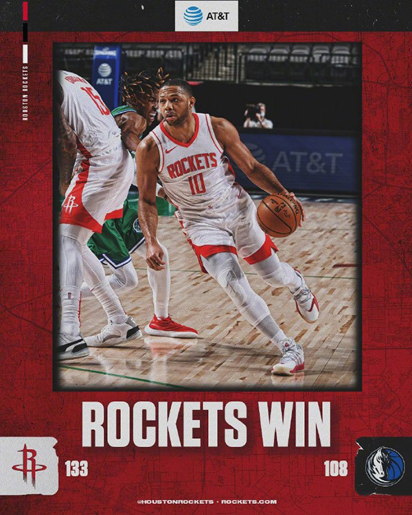 火箭133-108大胜独行侠 戈登33分 考辛斯28+17