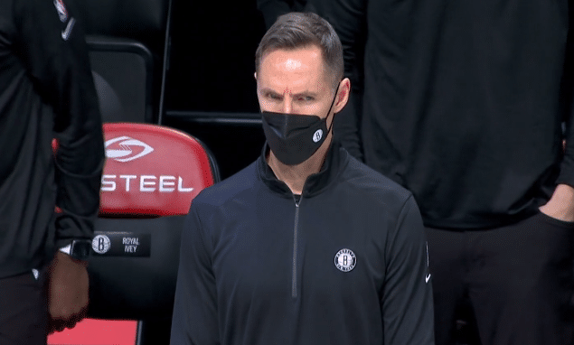 比赛正式开打后,哈登助攻乔-哈里斯轰进三分球,小乔丹内线封盖,随后乔-哈里斯持球反击再中三分球,哈里斯打铁不中后,哈登助攻杜兰特命中三分,欧文强突上篮,篮网开场11-2火力十足,防守也足够积极,小乔丹倒地拼抢地板球。