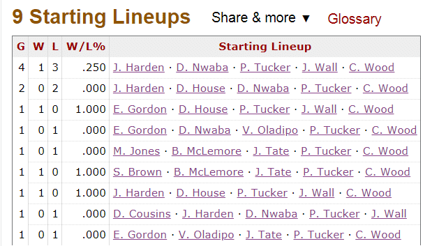 伤病和交易,让火箭的主力阵容频繁发生变化,过去9套首发,使用最多的也只不过4场,有7套首发只用过1场。