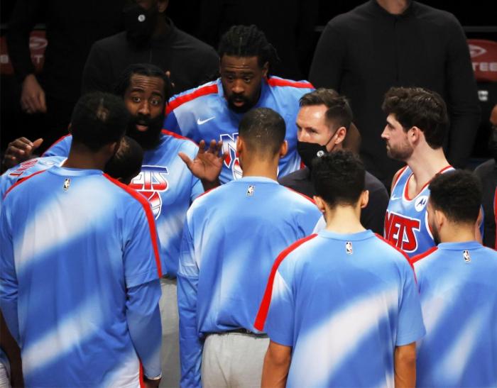 三巨头合体的第一场出现这样的问题很正常,KD和哈登刻意在寻找欧文,尤其是前三节,甚至哈登在很多能上篮的机会都主动传出来。归根结底是三人还没有更好的默契程度,只是达成了初步“共识”哈登控球,欧文无球,但是具体的打法和细节还需要慢慢去磨合!