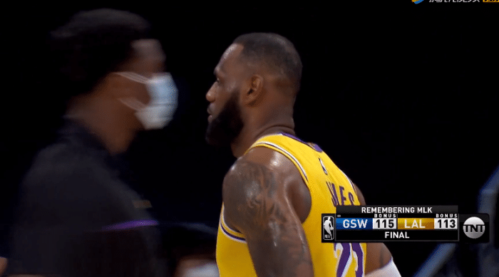 终场前1.7秒,詹姆斯顶着防守强投三分打铁不中,时间走完比赛结束,赛后湖人和勇士有多名球员相互拥抱,不过詹姆斯谁也不想搭理,一脸落寞直接扭头离场,心情很糟糕;曾经末节统治比赛的詹姆斯犹如隐身,关键时刻走步失误,不过湖人输球也给自己敲响警钟,每一场比赛都需要拼尽全力,稍一松懈可能就会输球。