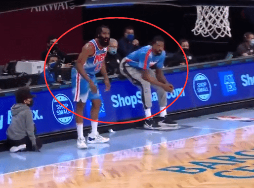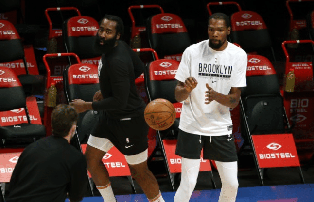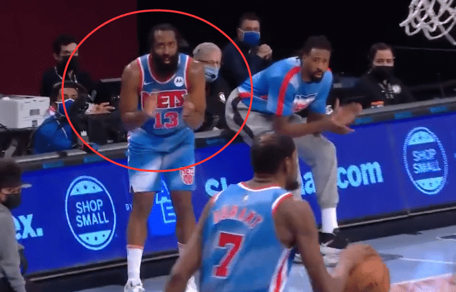 太沮丧!杜兰特拿球砸头,看看场边哈登的反应,大哥范十足