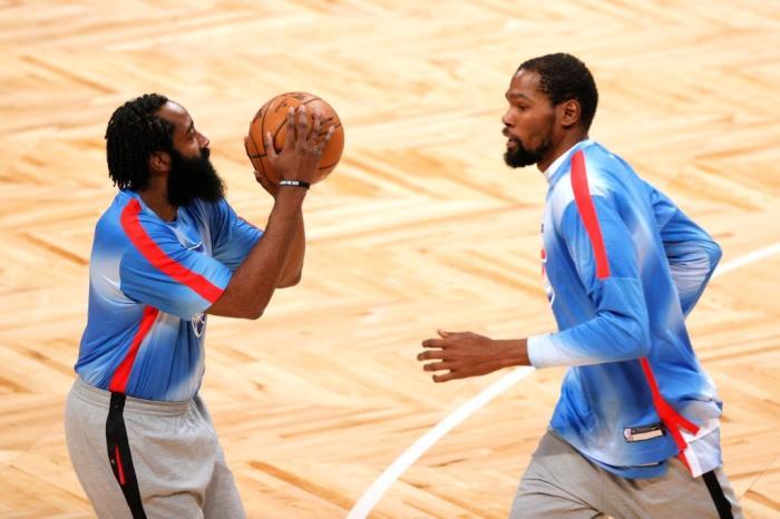 杜兰特和哈登两大巨头首次合体就打出统治力,全队122分他俩贡献107分,尤其是末节合砍27分统治比赛;等到欧文归队,篮网三巨头将更加不可思议;对此名嘴帕金斯调侃在纳什让他打最佳第六人之前赶紧归队,杜兰特和哈登看起来太好了。