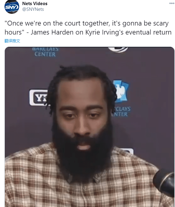 对于欧文归队三巨头合体,哈登表示:对于欧文归队我很兴奋,他是我们的关键拼图,希望我们尽早建立化学反应,一旦我们一起上场,那将是可怕的时刻!
