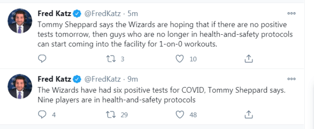 过去几天,奇才不断有球员检测结果呈阳性,和奇才相关的比赛也都推迟进行。谢泼德表示奇才只能希望明天不再有新的球员检测呈阳性,不久后,其他球员可以回到训练馆进行个人训练。