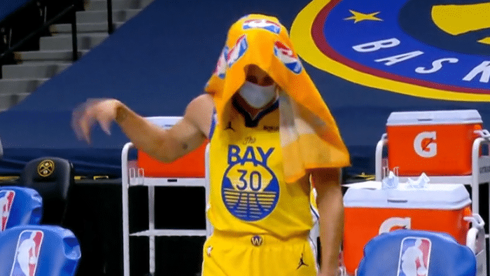 轰35分无奈输球!库里毛巾盖头沮丧离场,格林全场梦游1分5失误