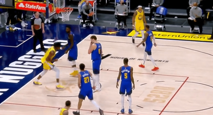第三节的比赛掘金这边保持着微弱的领先的领先,怀斯曼上演了一次精彩暴扣,怀斯曼先是与库里挡拆,怀斯曼顺下接球顺下迎着波尔-波尔完成一记隔人劈扣,这也是锁定了今日的五佳球,三节打完的时候勇士落后掘金14分,末节的比赛勇士没有打出什么有效的反击,最终全场比赛结束掘金114比104击败勇士。比赛结束后库里用毛由盖着头,他没有跟任何人打招呼直接离开。今天的比赛库里轰下35分无奈输球,格林全场梦游1分5失误,掘金这边则是7人得分上双。