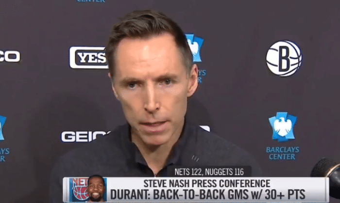 比赛结束之后篮网主帅纳什接受采访的时候盛赞杜兰特,称:能够执教KD真的非常开心,他很有天赋同时热爱比赛,尽管开局他有一些失误,但是很快他就让自己平静了下来,我觉得这是他复出之后必须要经历了的一些事情,凡事不可能一帆风顺,我觉得这是需要15-20场比赛来适应的。可能我需要对此更加谨慎,因为外界对于杜兰特的期待值太高了。