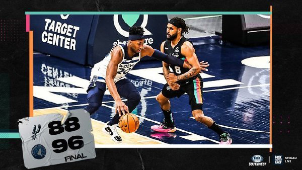 来源:24直播网01-11 11:38 24直播网讯:北京时间1月11日消息 NBA常规赛继续进行,马刺与森林狼迎来背靠背的第二场较量。此役两队当家球星德罗赞和唐斯都没有出战。森林狼阵中拉塞尔和比斯利双核驱动,两人双双砍下20+得分,率领森林狼主场96-88险胜马刺,成功复仇。
