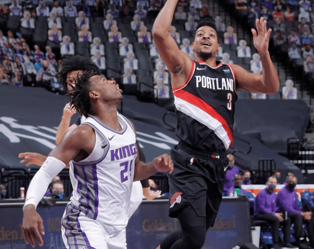 国王和开拓者两队的实力差距很明显,利拉德和麦科勒姆双枪首节便带队拉开分差,再加上安东尼这一点也有不错发挥,开拓者半场领先17分;开拓者双枪半场合力贡献28分,到了下半场,利拉德第三节专心组织,麦科勒姆单节投进3记三分独砍16分扛起进攻大旗,眼看分差奔着30分去了。