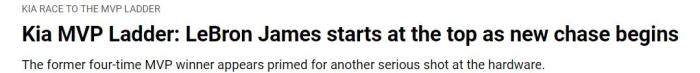 官方最新MVP榜出炉,詹姆斯榜首,字母哥仅第6,哈登竟没进前十