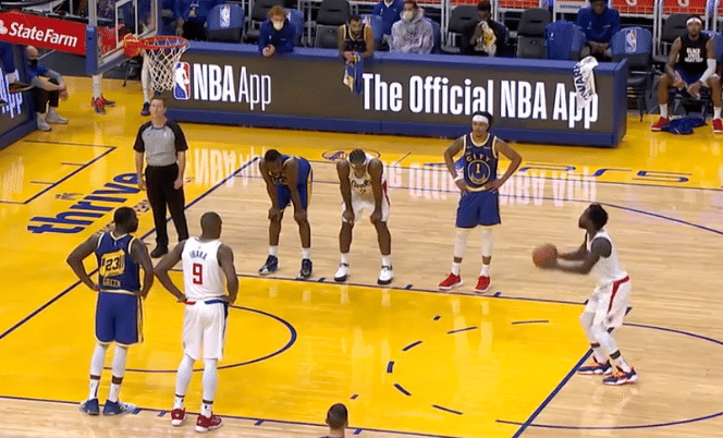 第四节的比赛开始后,科尔没有上维金斯,没有上乌布雷,勇士延续着自己第三节的疯狂进攻,达米恩-李先是抢到进攻篮板上篮打中,随后达米恩-李三分投射再中,帕斯卡尔三分也有,贝兹莫尔三分命中后,勇士将领先优势扩大到了6分,从第三节最后6分钟,到第四节的开局的4分钟时间里,勇士疯狂轰出了一波34:6的小高潮。