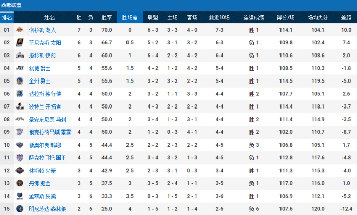 来源:24直播网01-09 14:3424直播网1月9日讯 今天NBA常规赛一共进行了10场比赛,其中西部多支豪强翻车,其中就包括了鹈鹕输给黄蜂、太阳加时赛兵败给活塞,快船被勇士上演22分大逆转等等,这也让西部的排名发生了翻天覆地的变化,这其中有一个最大的赢家,那就是湖人,因为快船和太阳的输球,所以他们渔翁得利,从第三升至第一。