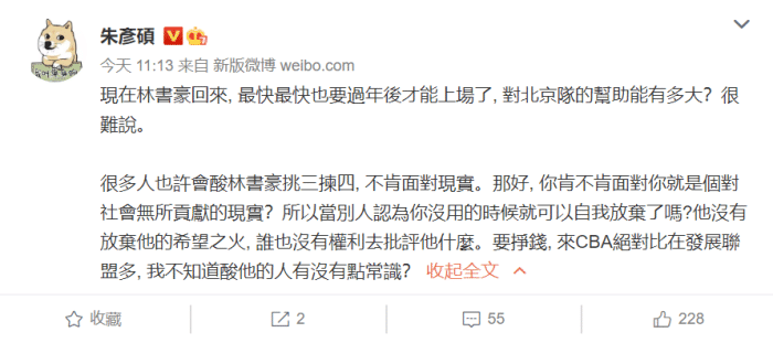 事实上,任何一个有梦想的人都值得支持和尊重,书豪在球技、球品以及人品方面真的没得黑,作为亚裔球员的代表,他一直努力训练努力提升自己的能力,并用自己场下的影响力去做慈善,这些我们都看在眼里、不管他是否选择重回CBA,都应该得到支持!