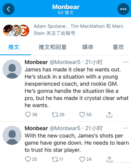 而今日一个名为Monbear的推特账号爆料哈登想尽快离开火箭,他不想和没有成功经验的年轻主帅和菜鸟总经理共事,而且还表示他对塞拉斯的战术不满,最近他的出手数下降可能就跟这个有关。值得一提的是这个账号被麦克马洪、文霍斯特等名记关注,可能也是新闻媒体方面的人,所以有一定的可信度!