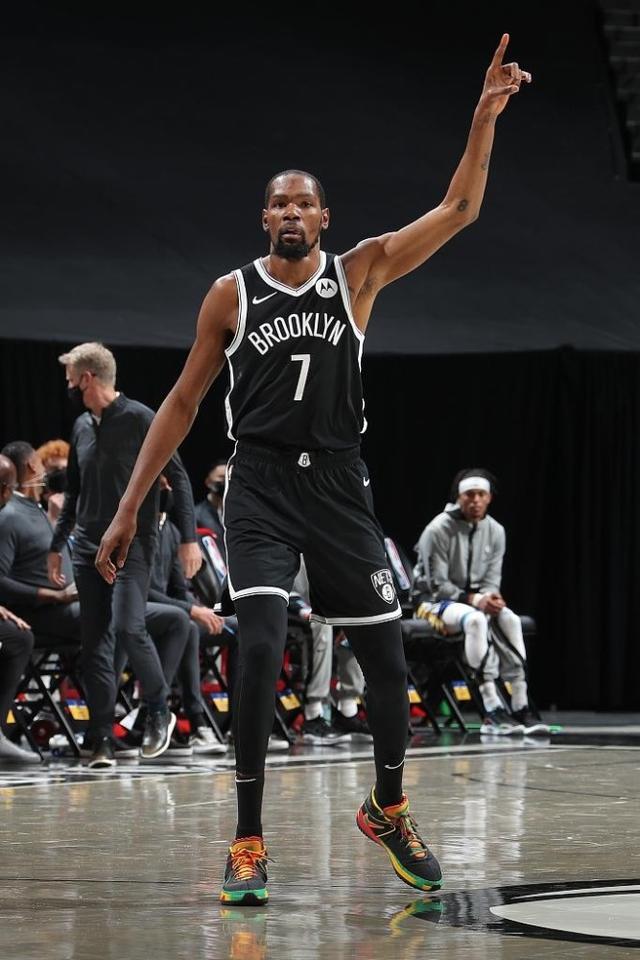 球队中防守效率排名第二的竟是杜兰特,他以101.8的防守效率位列联盟第46位。你能想象大伤初愈的杜小帅为了一胜拼了命在场上玩命追防的场景吗?这么玄幻的一幕恰恰出现在如今的篮网比赛中。没想到杜兰特这样进攻端无解的存在,要把体力用在防守端为队友擦屁股的补防任务上,这不是本末倒置吗?