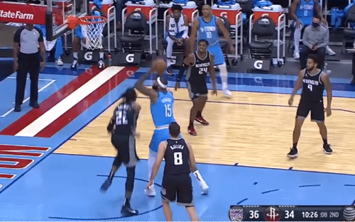 开场后,登哥的状态反而不如此前一个人带队的时候,没办法,磨合的阵痛是必须的。很快,哈登分别为新援沃尔和考辛斯送出助攻,特别是考辛斯这边,在暴扣之后,上演了争议的一幕。