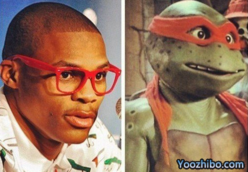 2、当威少戴上眼镜,穿上花衬衫,我们会发现他十分像经典漫画人物忍者神龟。而媒体也就此调侃威少,认为他是忍者神龟的兄弟,不然真的很难解释他为何有如此超群的身体素质。