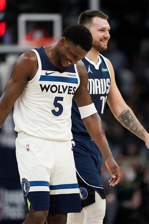 上赛季西决重演,第一节爱德华兹大爆发,开场欧洲步突破上篮,眼看森林狼4-9落后,华子急停中投稳稳命中,随后连中三分带队逆转局面;面对独行侠的攻势,爱德华兹手感滚烫,三分怎么投都有,又接连命中4记三分,握拳怒吼庆祝,首节打满12分钟,10投8中、三分8中6独砍24分1篮板1助攻。