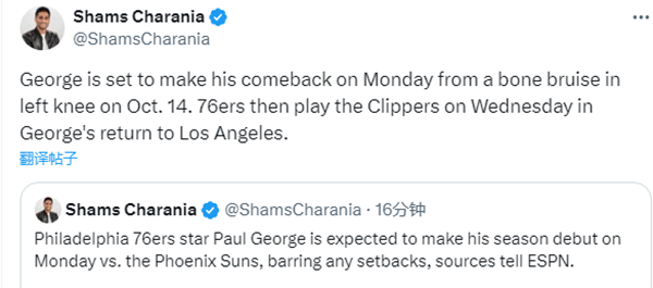大消息!乔治复出时间确定,先战76人首秀,再回洛杉矶战老东家