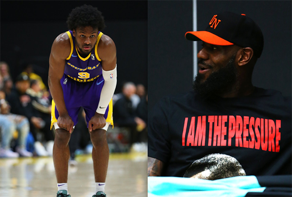 詹姆斯和萨瓦娜都坐在场边观战,南湾湖人官方晒照并且表示:父亲和儿子。