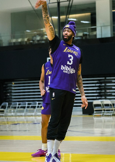 湖人官方晒出詹姆斯的训练视频,老詹戴着一顶紫色针织帽,先是命中大号三分,然后持球背打后仰命中,随后连中两记底角三分,值得一提的是,此时浓眉刚好路过,詹眉戴着同款针织帽。
